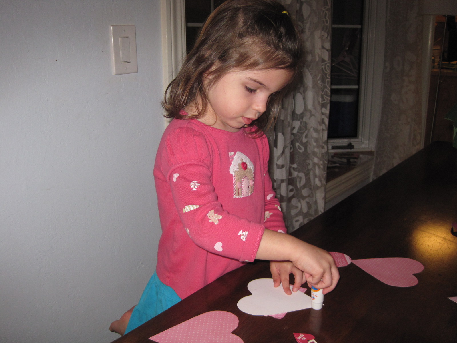 Now step back and admire your handy dandy valentine garland! And tell your three year old with the oral fixation not to eat the darned things! Paper is not food.