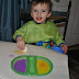 I recently found a new hobby of making my own slice-n-bake cookies. Land O' Lakes' recipe for Sparkling Candy Corn Cookies sparked this inspiration. You can make adorable cookies in vast amounts without having to spend a whole lot of time in the kitchen. Plus, you hardly need any ingredients. Ever since making Candy Corn and Frankenstein (see pictures at the end of this post) cookies for Halloween, I've started to conjure up ideas for Christmas cookies, but I still have a few weeks until I start that baking. However, this week is Thanksgiving and I wanted to try out an idea I had. Tonight my son and I made some Indian Corn cookies to share with his Kindergarten class.