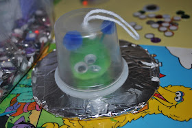 This morning while I was checking my Facebook, my son runs into the living room with his new alien spaceship - well, he made his alien and plopped him in a cup. He must really like this craft! He made most of it himself. His variation: