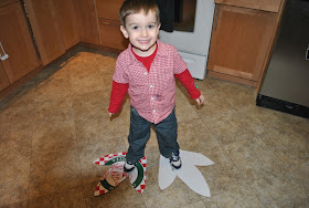 Cut out footprint and decorate.  It was pretty close to bedtime when we started, so I only had my son use some markers for decoration.  He was too excited to wear the footprints, so the coloring was short-lived.