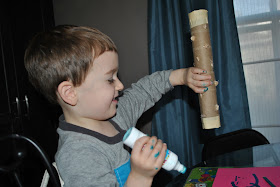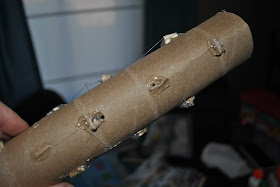 Ever since we started this craft blog, I've channeled my inner hoarder and have refused to toss any cardboard tube for fear that I would come up with a good idea and not have any cardboard tubes in sight.  During my post-holiday cleaning all of this craft clutter is driving me nuts, so I started to wrack my brain for something to build with the tubes.  This afternoon we made a pre-schooler friendly rainstick.  It came out ok.  It does sound like the rain if you tilt it very slowly.  But see the instructions below how to make this craft even better!