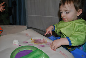 When my son was done painting, he also enjoying mixing all of the colors.  My daughter thoroughly enjoyed eating the marshmallows.