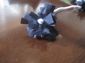 | We had to snip the middle petals a little bit because they were rolled up so tightly. We liked mixing to colors of napkins to make this multi-colored flower. |