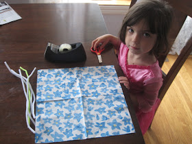 I made a fancier version of these many years ago using floral wire, floral tape, and heavy crepe paper. It was fun making a simpler version with my kid.