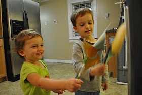 We busted out the scissors, glitter glue, and googly eyes to make some fancy ripped up clothes with monster faces.  I can't describe the fantastic dances that were inspired by the fluttering sleeves and exposed legs.  It was a whirlwind!
