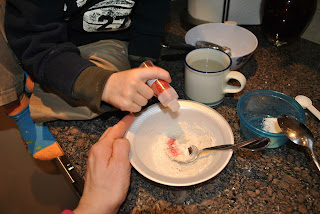 Mix in a coloring. We used a drop of poster paint. We also decided to add in lots of glitter.